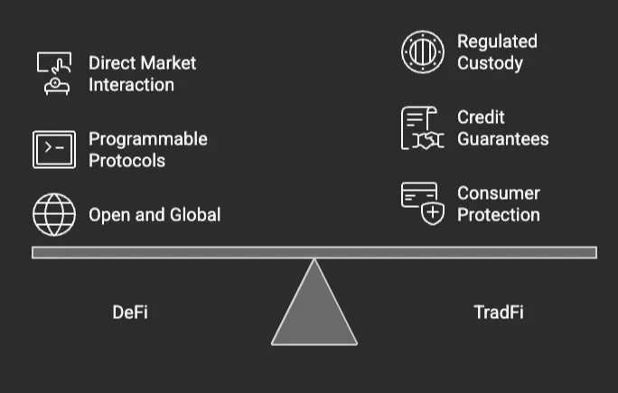 When DeFi and TradFi operate together, capital moves more efficiently, markets price assets with better data, and investors get exposure to a broader set of opportunities. Integration gives traditional investors easy access to digital assets and DeFi yields. It gives DeFi protocols a path to stable funding and a link to regulated markets.